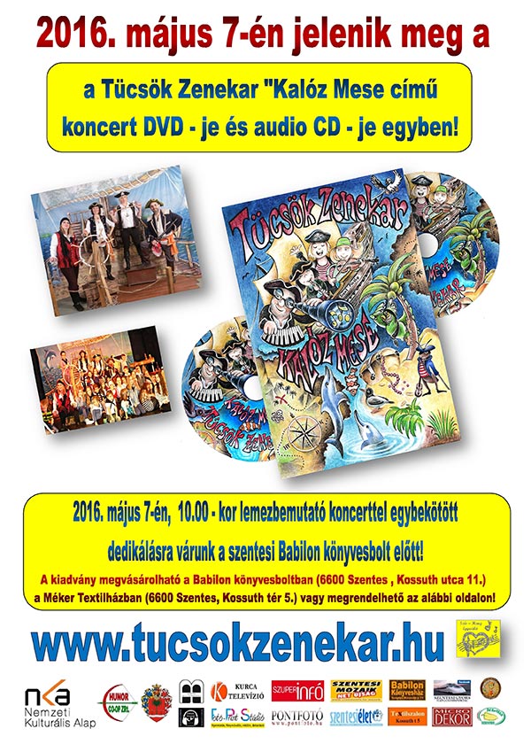 2016 tavaszán új sorban a hatodik kiadvánnyal jelentkezik a szentesi Tücsök Zenekar. A négy jó barát című nagylemez után most új vizekre evezett, pontosabban hajózott városunk kedvelt gyermekzenekara és Kalóz Mese című műsorát adja ki, a tervek szerint május 7-én. - Egyik régi álmom volt, hogy elkészítsem ezt a Kalóz Mese című lemez.A dalokat 10 évvel ezelőtt megírtam Kókai Attila szövegíró - zenészbarátommal. Idővel fiókba tettük ezt a projektet, majd tavaly a Tücsök Zenekarral újra elővettük a műsort, elkezdtük játszani! 2016-ban a Nemzeti Kulturális Alap egyik pályázatának és számos támogatónknak köszönhetően kiadványt tudtunk csinálni belőle – nyilatkozta Mészáros Gábor zeneszerző a Tücsök Zenekar vezetője.