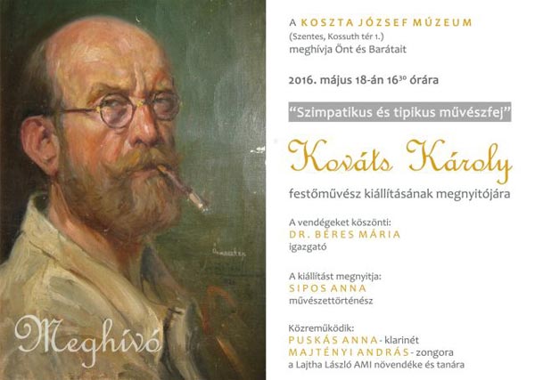 Szeretettel várnak minden érdeklődőt a Múzeumi Világnapon (2016. május 18-án 16.30 órakor) nyíló Kováts Károly festőművész gyűjteményes kiállításának megnyitójára. Ezen a napon 9-15 óra között kiállításaink ingyen látogathatók.