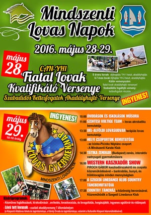2016. május 28-29-én rendezi meg a Mindszenti Lovas Klub a hagyományos lovas napokat, nem hagyományos módon. Az első napon rendezik a Fiatal Lovak Kvalifikációs Versenyét, melyben lesz akadályhajtás is, valamint Szabadidős Fogathajtó Verseny.