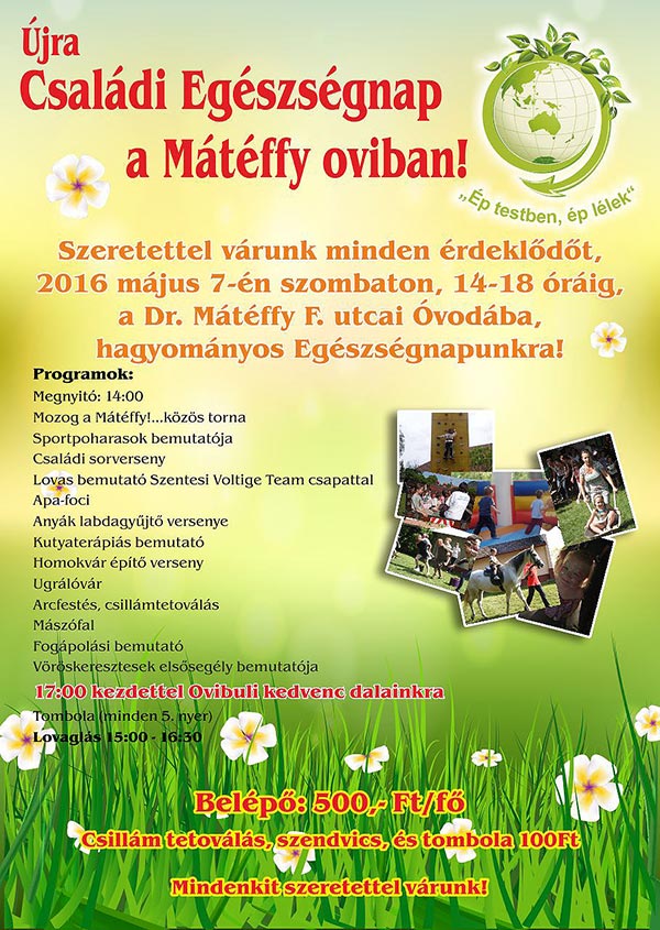 Május 7-én újra Családi Egészségnap a Mátéffy utcai oviban! Minden érdeklődőt várnak szeretettel! További infó a plakáton! KATT a képre!