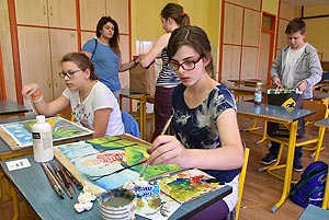 Magyar táj, magyar ecsettel” címmel rendezte meg a SZIVÁRVÁNY ORSZÁGOS KÉPZŐMŰVÉSZETI versenyt immáron hetedik alkalommal a Szivárvány Művészeti Iskola. Az elődöntőn sikeres versenyzők 2016. 05. 21-én szombaton 10.00 órai kezdettel találkoztak a Klauzál Gábor Általános Iskolában, ahol megmérettették magukat. Két korcsoportban folyt a verseny, mind a kettőben 25-25 fővel. El kell mondani, hogy az elődöntőre 59 intézményből 483 pályamunka érkezett az előválogatóra - mondta Kálmánné Szabó Erzsébet a Szivárvány AMI vezetője.