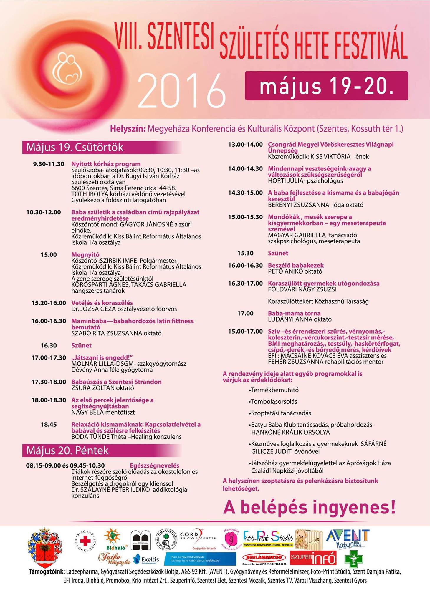 Szentesen immáron nyolcadik alkalommal rendezik meg Szentesen a Születés Hete fesztivált. A plakáton Ön is megtekintheti az ez alkalomból szerevezett rendezvények listáját.