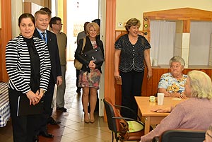 Puskásné Halál Ágnes az intézmény bemutatása után Dr. Juhász Tündét kormánymegbízottól vette át jelképesen a számítógépeket, amelyeket a jövőben az ellátottak fognak használni.
