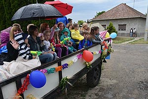 A ballagók is felpattannak egy-egy utánfutóra, az óvodások betárazzák a vízipisztolyaikat és így vonulnak végig a főutcán. Természetesen a végén kiürülnek ezek a fegyverek és ezzel hatalmas élményt szereznek a legkisebbeknek.