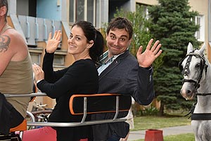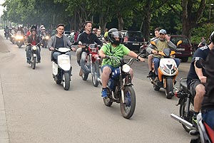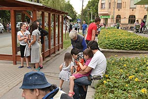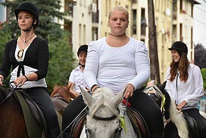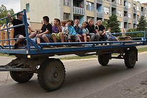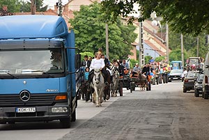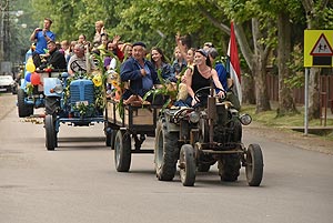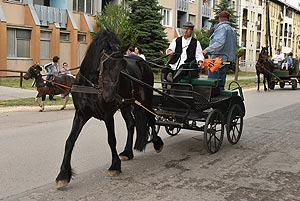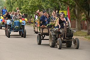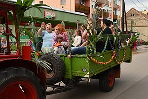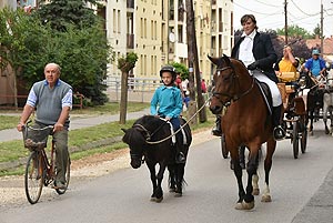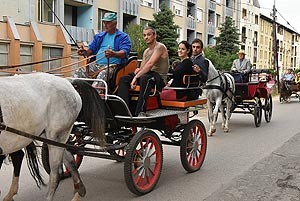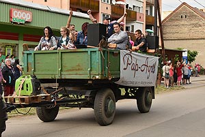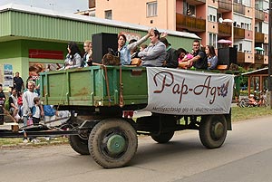 A tömeg a központba érve szlalomozással vonul végig az utcán és ezzel a bakon ülők is kibékülnek mert hát ringatóznak, mint a sógorok egy-egy krigli sört szorongatva.
