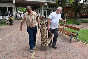 2016. június 21-én délelőtt megpróbálták levenni a helyéről a "napernyős lány" szobrot a Kossuth téren, hogy megjavítsák a letört napernyőjét. Első nekifutásra, taktikusan, nem sikerült a manőver, de a Croodék rajzfilm egyik mondását követve, - mely szerint "a taktika a gyenge emberek fegyvere" - sikerült erőből megoldani a talapzathoz való kötődést.