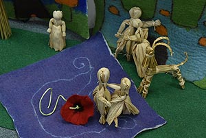 A Csongrád Megyei Pedagógiai Szakszolgálat Szentesi Tagintézményének tehetség-gondozó csoportjába járó gyermekeinek műveiből rendeztek mini kiállítás a Gyermekkönyvtárban. A csoportban SNI, BTM és hátrányos helyzetű, tehetséges gyerekek is vannak, akik csuhé és nemez technikával készítettek alkotásokat.