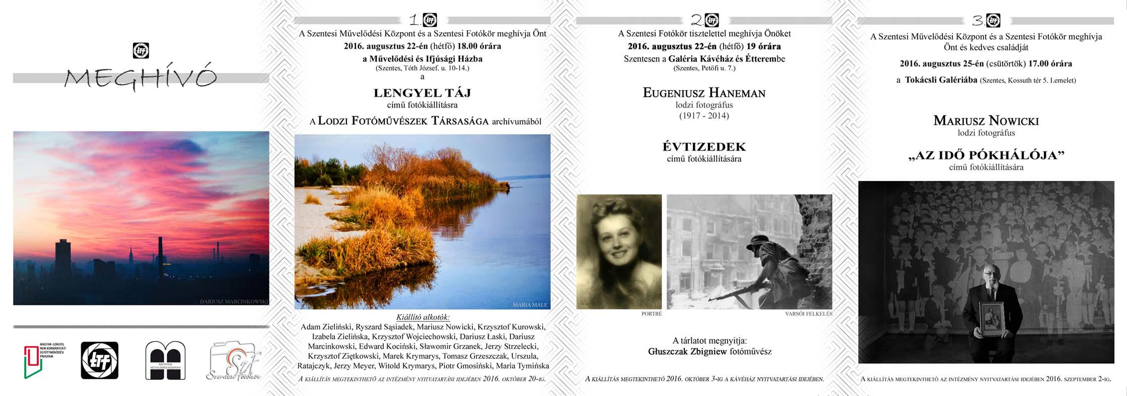 A Szentesi Művelődési Központ és a Szentesi Fotókör a Łodzi Fotóművészek Társasága archívumából LENGYEL TÁJ címmel rendezett kiállítást, mely 2016. augusztus 22-én (hétfőn)nyílt meg a Művelődési és Ifjúsági Házban.