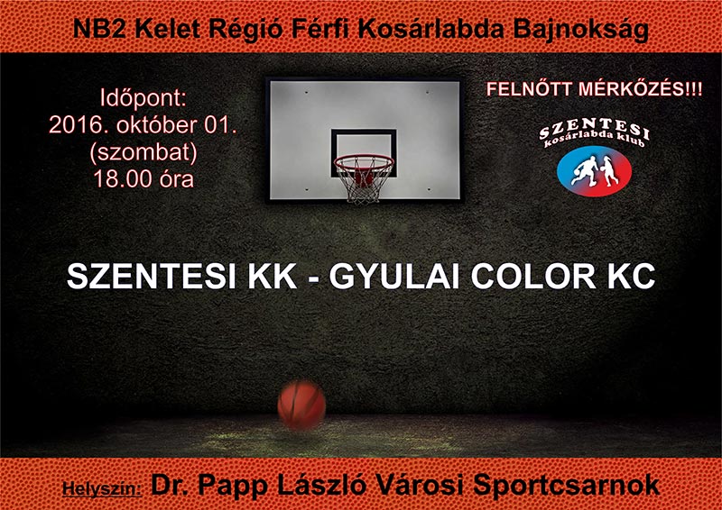 A Szentesi Kosárlabda Klub férfi NB2 bajnokság nyitó mérkőzésén szurkolhatunk 2016. október 1-jén a Dr. Papp László Városi Sportcsarnokban.