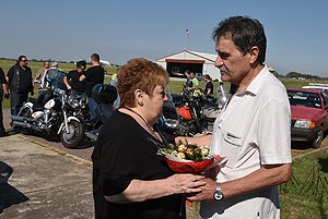 Már egy éve, hogy külföldről hazafelé tartott, amikor tragikus motorbalesetben elvesztettük (2015. július 25-én) Hevér Lajost. Tizennyolc éve kezdett el Spanyolországba járni, azóta minden július közepén felült a motorjára és egyedül elmotorozott oda. Az volt az álma, hogy egyszer átmegy Afrikába is. Őrá emlékeztek 2016. augusztus 27-én barátai, tisztelői és családja. A megemlékezés a Kertvárosból indult és a motorosok végigszelték Szentes utcáit, majd a repülőtérre vonultak. Egy kis pihenő után az Alsó református temetőben folytatódott a megemlékezés. Felemelő érzés volt, hogy miközben folyt a megemlékezés, repülők köröztek a temető fölött így tisztelegtek Hevér Lajos emléke előtt. KATT a képre!