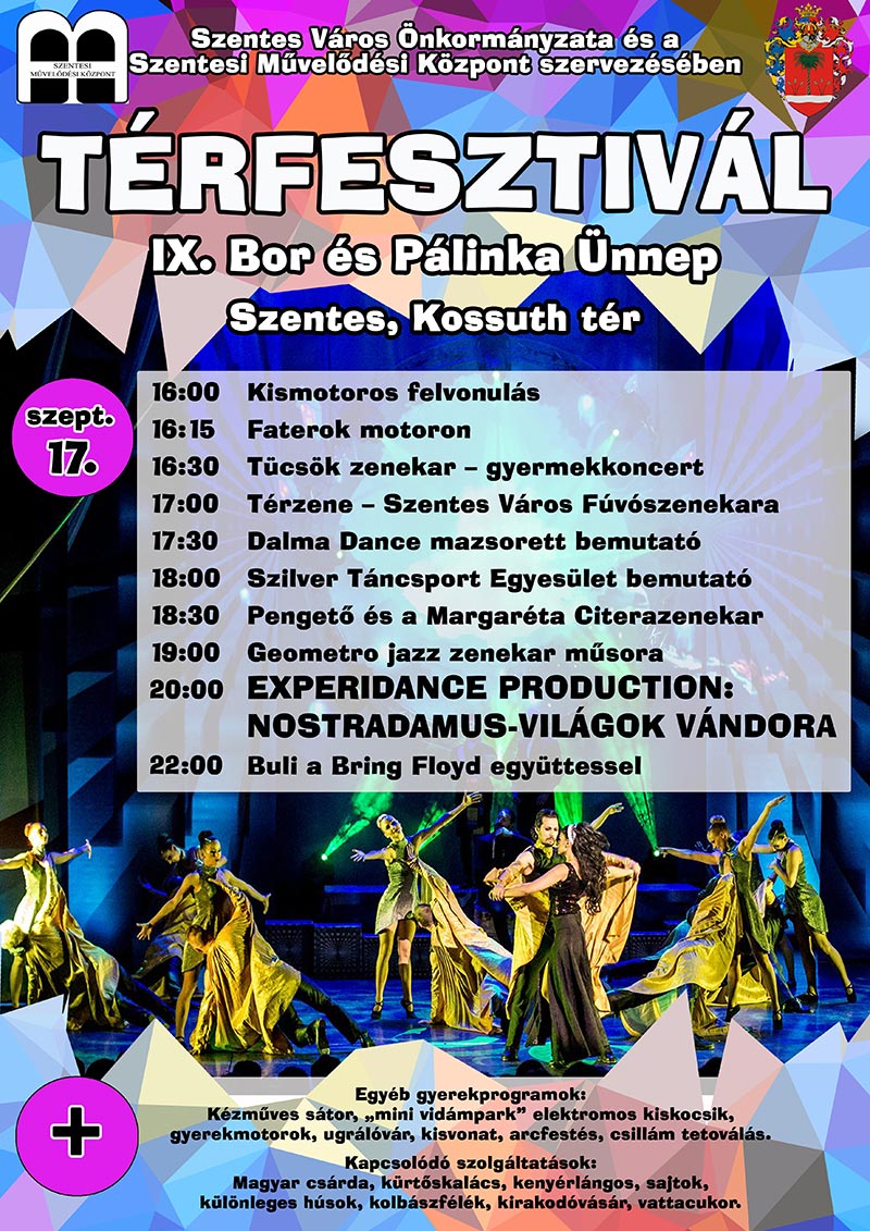 A Nostradamus – Világok vándora előadást láthattuk az E4xperiDance előadásában a 2016-os Térfesztiválon. 2002-ben járt városunkban először a táncshow, amikor is átadták a megújult szentesi főteret. Évekkel később újra ellátogattak városunkba szintén a térfesztivál keretében, majd ebbe az évben Nostradamus jövendöléseit álmodta színpadra a társulat. Ennek az előadásnak örülhettünk idén.
