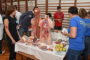 A szakmacsoportos bemutatókon az iskola növendékei interaktív játékokkal készültek a leendő diákoknak. Ezen kívül más érdekes bemutatókat is láthattunk melyek közül kiemelhetjük azt amikor egy állati szíven mutatták meg annak részeit.