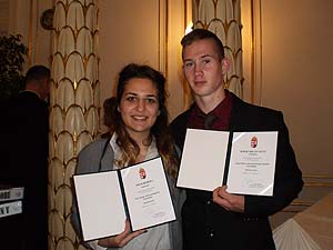 Tóth Rebeka 11.K osztályos tanuló a Béri Balogh Ádám ösztöndíj egyik nyertese. Kiváló tanulmányi eredménye mellett példás magatartásával, szorgalmával, elhivatottságával, aktivitásával nyerte el a bíráló bizottság szimpátiáját. Borsi Milán 11.K osztályos tanuló a Lippai Balázs esélyegyenlőségi ösztöndíj egyik nyertese, amely azért is figyelemre méltó, mert összesen tízen kapták meg az országban. Az ünnepélyes átadás, a környezet, a fogadás nagy hatást gyakorolt mindenkire, aki részt vehetett ezen a jelentős eseményen. A díjátadó ünnepség után Oláh Gergő műsorát tekinthették meg a díjazottak.