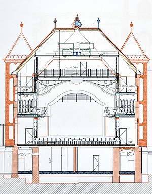 Első és legfontosabb, hogy az épület színházi szárnya nem lesz lebontva és új épületként épül majd a színház, hanem a régi külsőbe egy új modern belsőt álmodtak a tervezők. A színház nem konkrét színházi funkciókat fog csak ellátni, mert a támogatás idegenforgalmi attrakcióra való támogatás, nem pedig színház építésére szolgál. Ezért a belső teret többfunkciósra tervezi, melyben lehet bál, lehet nagyobb konferencia, vagy szalagavató, de alkalmas lesz centrális, pást vagy éppen kukucska színházi előadások megvalósítására.