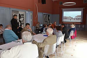 Wittek Krisztina főépítész ismertette elsőként a ház történetét, majd Szabó János építész folytatta a tervismertetőt, végül Szenes István a belsőépítészeti terveket ismertette.