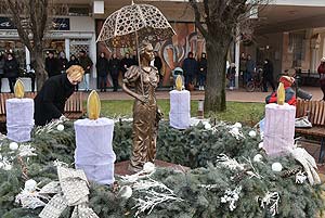 Ha nehezen is, de meggyulladt! 2017. december 3-án nyílt meg Szentesen a Kossuth téren a karácsonyi vásár, valamint a városi adventi koszorú első gyertyája. A vásárban a SzeVASz társulat korhű ruhákban varázsoltak ünnepi hangulatot. Ruháik a most nagy sikerrel folyó új darabjuk jelmezei is egyben. Kis kavarodást okozott, hogy egy időpontra volt hirdetve a gyertya gyújtás és a vásár megnyitója ez csak pár perces csúszást okozott a két program között. Zsadányi József katolikus plébános tartott ünnepi beszédet az első gyertya gyújtáson.