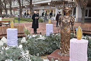 Veres-Ravai Réka evangélikus lelkész beszédében elmondta, hogy amikor pedig a negyedik gyertya lángja is felragyog, eszünkbe juthat a napkeleti bölcseket vezető betlehemi csillag ragyogása. Ha tehát már mindegyik gyertya ég, ez azt jelenti, hogy elérkezett a karácsony: boldogan ünnepelhetjük Jézus Krisztus születését, a nekünk adott végtelen Szeretetet.