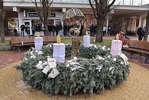 2017. december 24-én délelőtt 11 órakor picit szeles időben gyülekeztek a szentesiek a városi adventi koszorúnál, hogy közösen gyújtsák meg az.