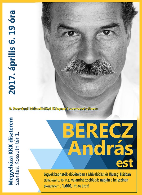 2017. április 6-án Berecz András ének- és mesemondó estjére várják az érdeklődőket a Megyeháza KKK dísztermébe. További részletek a plakáton!