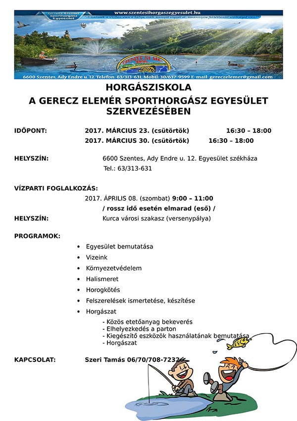 HORGÁSZISKOLA A GERECZ ELEMÉR SPORTHORGÁSZ EGYESÜLET SZERVEZÉSÉBEN