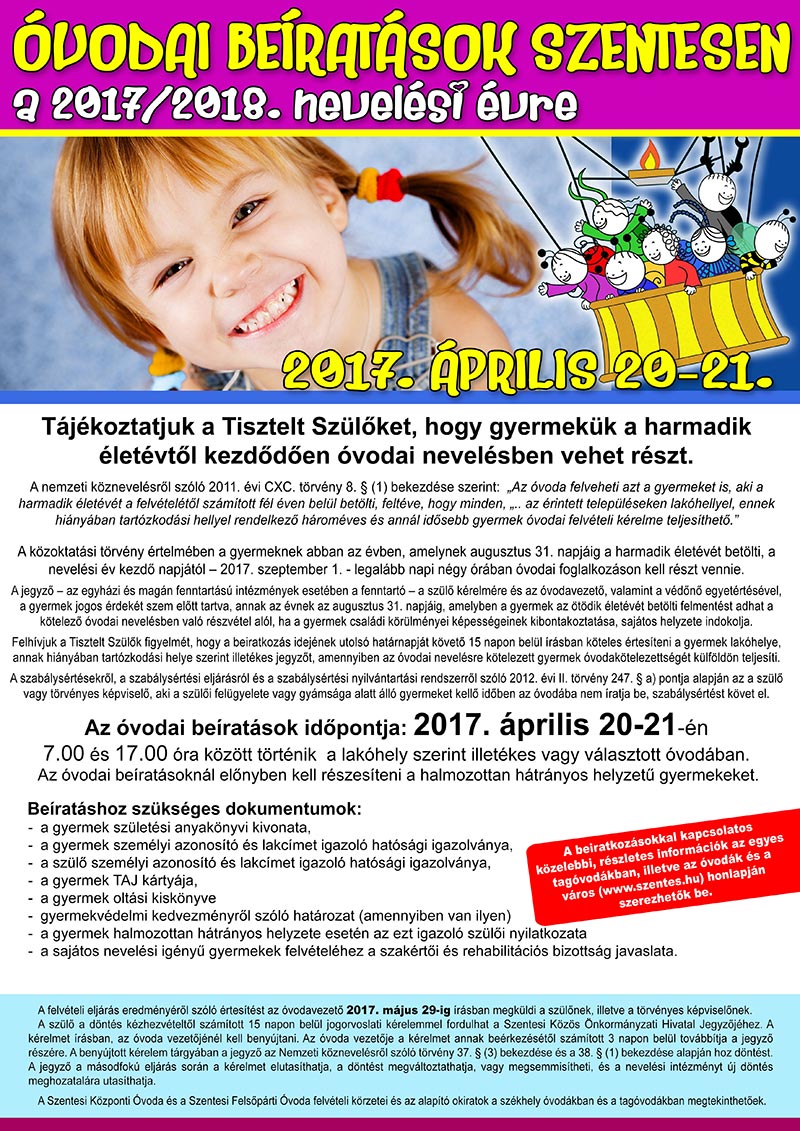 Óvodai beíratások Szentesen a 2017/2018. nevelési évre
