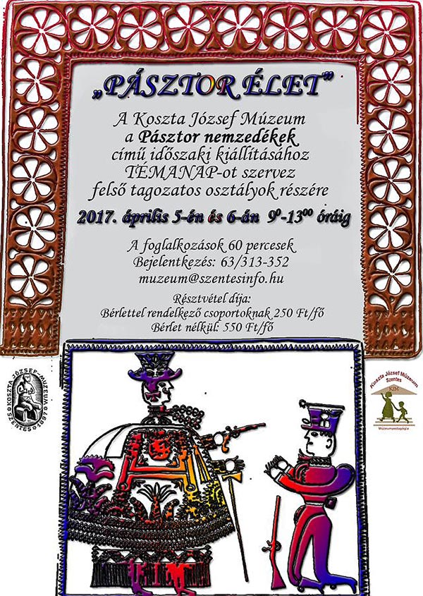Szeretettel várjuk felső tagozatos tanulókat a Pásztor nemzedékek c. időszaki kiállításunkhoz kapcsolódó témanapjainkra 2017. április 5-én és 6-án 9 és 13 óra között.