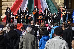 A Kossuth téri ünnepség programja: 10.00 Ünnepélyes zászlófelvonás Köszöntőt és ünnepi beszédet mond: Szirbik Imre polgármester ÜNNEPI MŰSOR Jövőnként Néptáncegyüttes: Délalföldi táncok Bánvölgyi-Geréby Dóra magánének művésztanár: Népdalcsokor Tomanek Gábor színművész: Sajó Sándor: Magyarnak lenni Jövőnkért Néptáncegyüttes: Gagybátori táncok 1849.