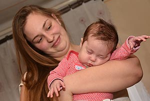 Második állomásként Kajánba tettünk látogatást Fülöp Natasa Barbarához. Huszka Barbara kislánya január 12-én érkezett a családhoz, és hát jól lakott gyomorral nehéz volt fennmaradni, várni a vendégeket. Természetesen neki még az a dolga, hogy egyen és aludjon rá ér még a vendégvárásra.