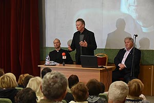 Dr. Beer Miklós váci megyéspüspök tartott közéleti kérdésekről előadást a Művelődési és Ifjúsági Házban Szentes Város Önkormányzata és a Szent Anna Plébánia szervezésében 2017. április 18-án.