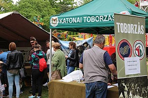 A reggeli ködös, hűvös idő kicsit mindenkit megijesztett, de ahogy kisütött a nap rengeteg család érkezett ki tekintettel a hosszú hétvégére és a gyönyörű, parkos környezetre. Minden katonai sátor népszerű volt. A szentesi búvárok gyakorlatilag pihenés nélkül, folyamatosan ismertették az eszközeiket. A csomagolt víz is nagyon jól fogyott, bár sokan félve kérdezték meg, hogy vihetnek-e?