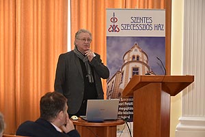 – Az ajtók kinyílnak, és a szentesiek birtokba vehetik az elsőként megújuló részeket. Az állványzatot leszedik a homlokzatról, és a ház utcai frontja kinyílik abban a formában, amelyet élő szentesi így még soha nem láthatott – tekintett a nem is annyira távoli jövőbe köszöntőjében Szirbik Imre. A polgármester úgy fogalmazott, már asztalon van a második pályázat, amely segítségével a szálló színházterme és a főbejárat is megújulhat. A konferenciát Schulz Péter, a Csongrád Megyei Építész Kamara elnöke nyitotta meg.