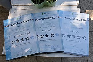 Minősítő Szakbizottság a minősítés során a nemzeti védjegy odaítélésében: - strandfürdő kategóriában 189 ponttal **** - azaz négy csillag - élményfürdő kategóriában 185 ponttal **** - azaz négy csillag - fedett uszodájuk uszoda kategóriában 183 ponttal ***** - azaz öt csillagos besorolásra javasolta a fürdőt.