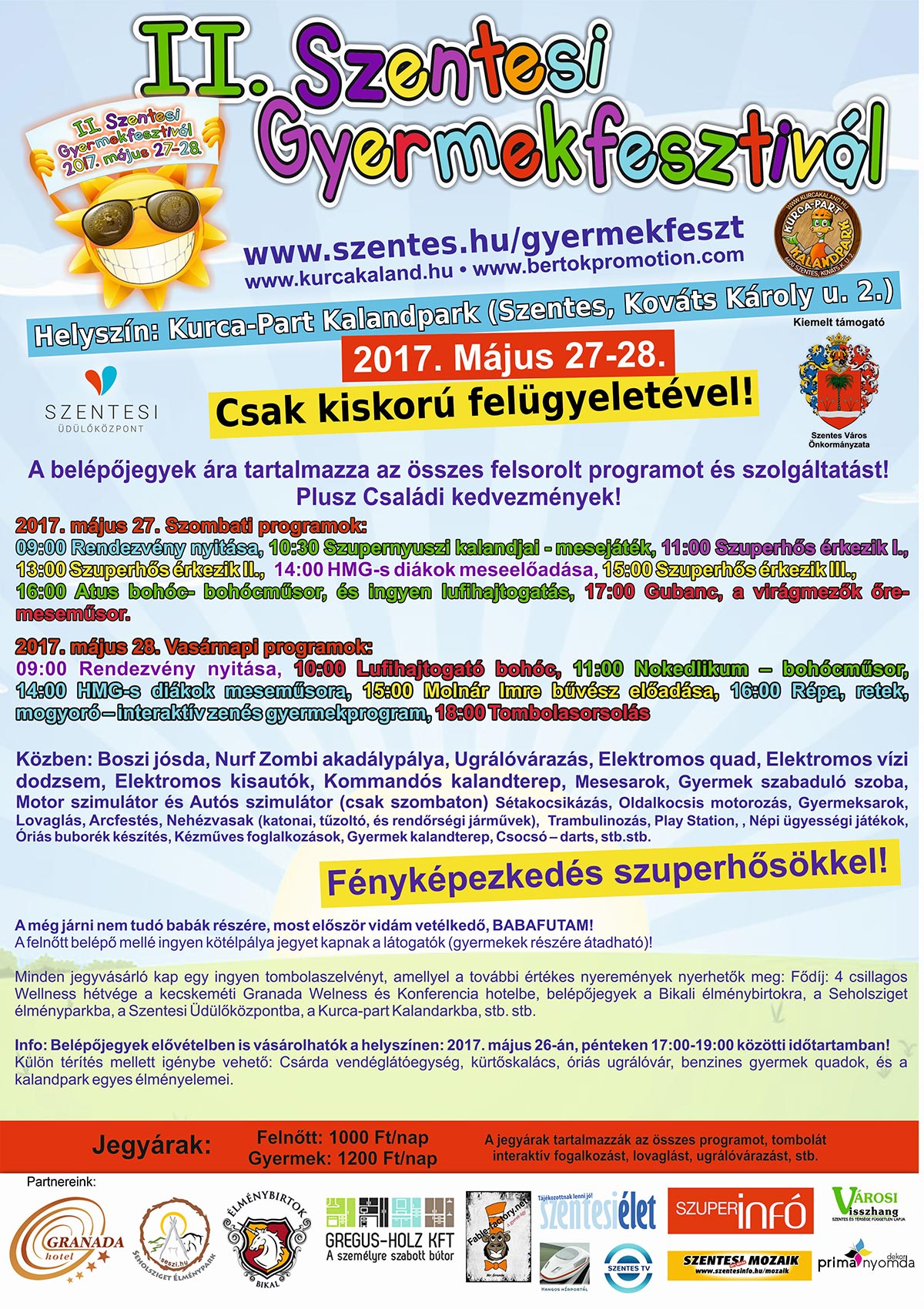 A tavalyi hatalmas siker után újra közeledik a II. Szentesi Gyermekfesztivál időpontja! Újra együtt szórakozhat az egész család! Szentesen a gyermekek „Sziget Fesztiválja” kerül megrendezésre, Szentes legnépszerűbb turisztikai attrakciójában, a Kurca –part Kalandparkban!