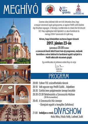 2017. június 23-án (pénteken) 20.00 órakor a szecesszió korát idéző Szent Iván éji programon kerül mindez átadásra egy emlékezetes est keretében. Jöjjön el Ön is, várjuk családjával hozzátartozóival az éjfélig tartó megtekintésre.