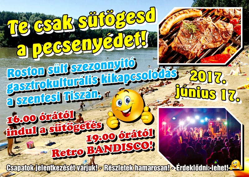 2017. június 17-én Roston sült szezonnyitót rendeznek a Tiszai strandon. A sütögetés nem verseny a jó hangulat a fontos a finom ételek és a jó zene.