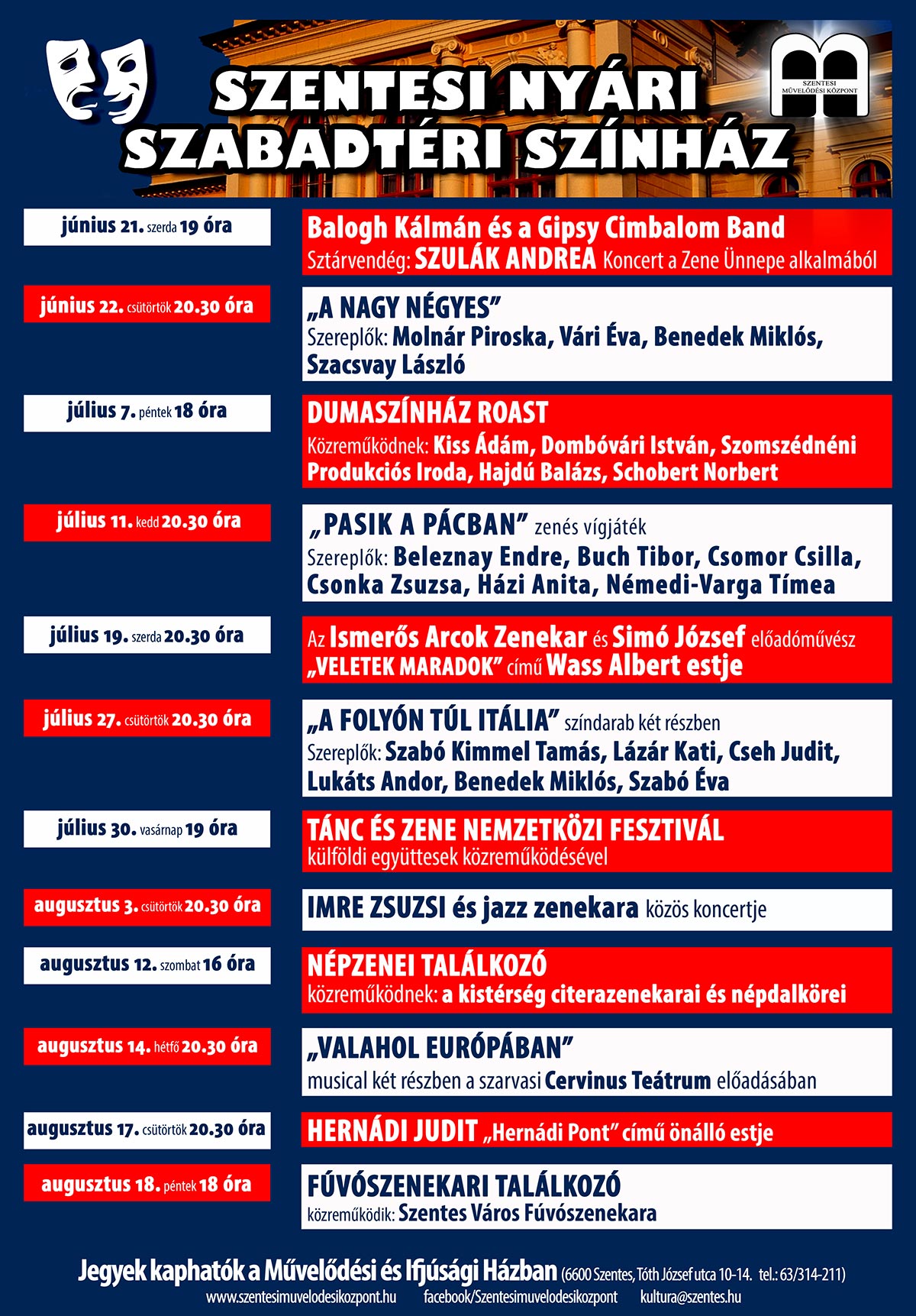 Idén különleges előadásokat láthatunk a megszokott nyári színházi programok között, hallhattuk a Nyári Szabadtéri Színház sajtótájékoztatóján. A nyári évadnak két szervezője van, így a Szentesi Művelődési Központ munkatársai mellett az ORLAI Produkciós Iroda is bekapcsolódik a nyári színházi programba.