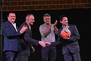 A sport a mindenünk...szülő-gyerek, egykori és mai vízicsillagok vízilabda mérkőzése az "50"-es medencében.