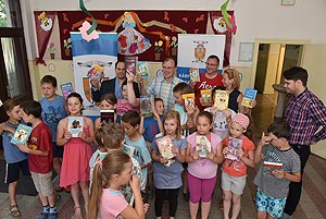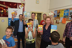 A Szentes-Csongrád Rotary Klub képviseletében Nagypéter Sándor és Tímár Ferenc valamint a napilap képviselői érkeztek 2017. június 14-én a Szentesi Deák Ferenc Általános Iskolába, ahol a 3.a osztály vette át a könyveket.