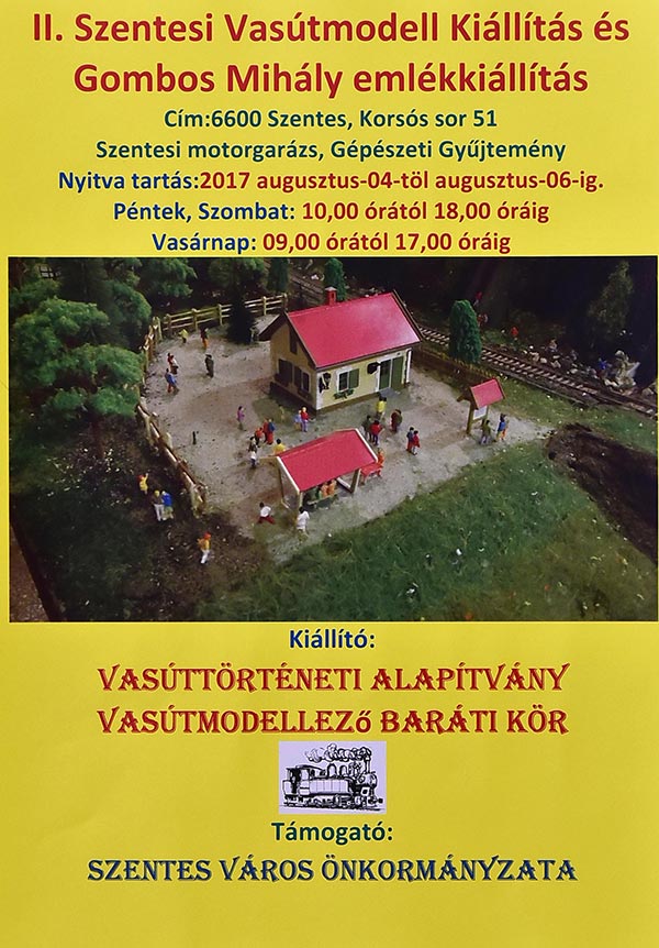 2017. augusztus 4-6-ig tekinthető meg immáron második alkalommal a Szentesi Vasútmodell Kiállítás a Szentesi Motorgarázs, Gépészeti Gyűjteményben.