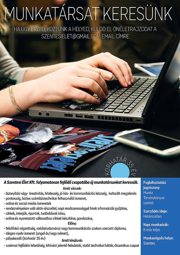 Ha szereted a kihívásokkal teli munkát, érdekes emberekkel akarsz találkozni és írni róluk, vagy éppen akció dús eseményről tudósítani, akkor jelentkezz! További részletek a plakáton!