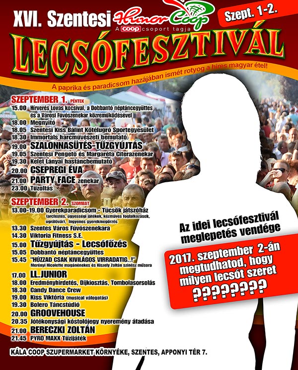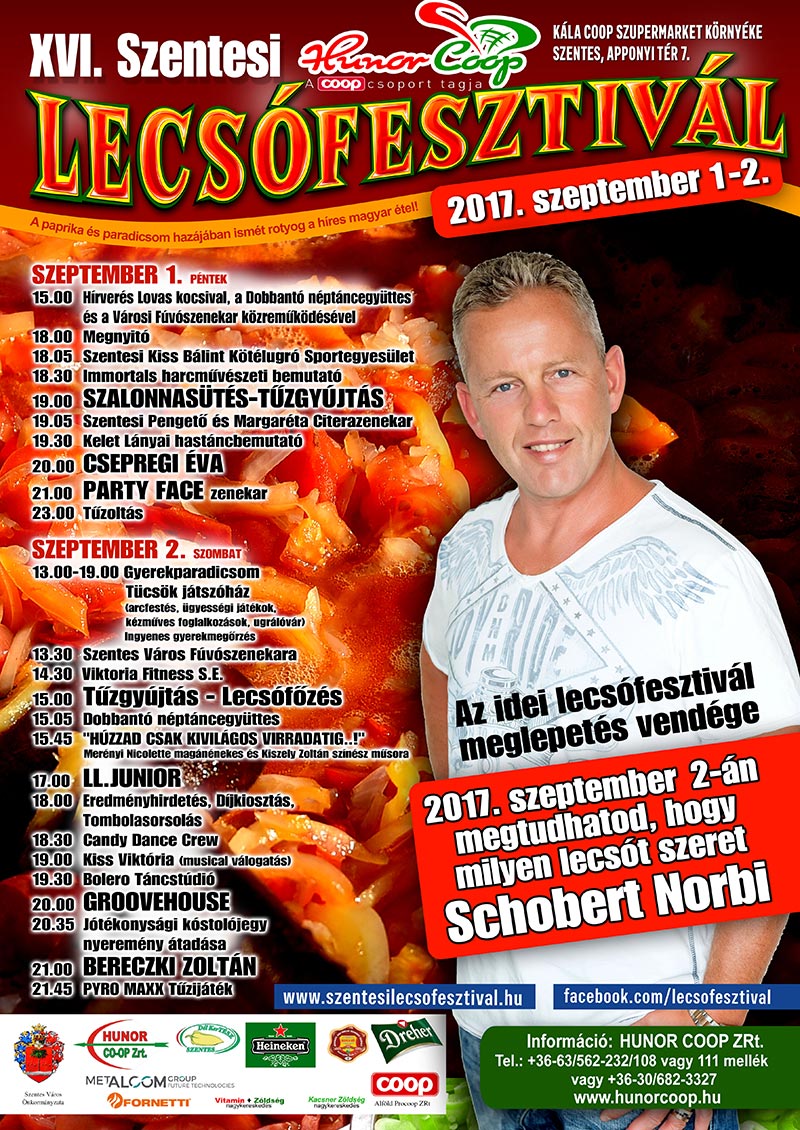 Sokan tippeltek, és sokan jól, hogy az idei lecsófesztiválon Shobert Norbit is a vendégek között tudhatjuk. Hamarosan kisorsoljuk a mozijegyeket, melyet a Szentesi Moziban válthat be a szerencsés család! És, ezzel még nincs vége a meglepetés vendégeknek! Hamarosan újabb infóval jelentkezünk, de addig is íme a programplakát!
