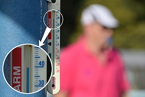 Ezt a kánikulát csak vízparton lehet kibírni - mondták sokan a szentesi strandon. Igaz a hétvégén rendezik meg a Diapolo Kupát is a Dr. Rébeli-Szabó József Városi Uszodában, de e mellett is van bőven vízfelület a felfrissülésre. A fenti kép 18.00 órakor készült a 33-as medence mellett található hőmérőnél.