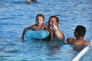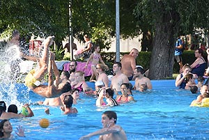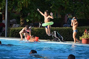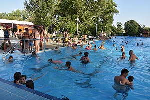 Ezt a kánikulát csak vízparton lehet kibírni - mondták sokan a szentesi strandon. Igaz a hétvégén rendezik meg a Diapolo Kupát is a Dr. Rébeli-Szabó József Városi Uszodában, de e mellett is van bőven vízfelület a felfrissülésre. A fenti kép 18.00 órakor készült a 33-as medence mellett található hőmérőnél.