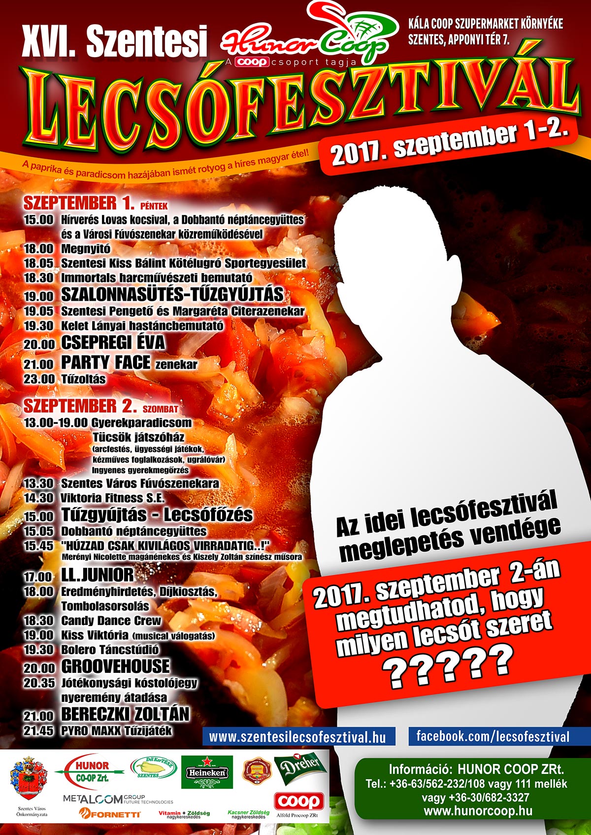 Minden évben érkezett egy-egy meglepetés vendég a Szentesi Lecsófesztiválra. Volt már itt Kovács Koko István, Növényi Norbert vagy Gyurta Dani, akivel szelfizhettek a főzőcsapatok. Idén is többen kaptak meghívást és reméljük, hogy megérkeznek. Egy vendégről már be is tudunk számolni, aki nem szokott gasztronómiai fesztiválokon részt venni, de értesült, hogy mekkora buli a Szentesi Lecsófesztivál, így felkérésünkre egyből IGENT mondott. Szóval bármelyik csapat megkóstoltathatja lecsóremekművét!