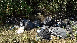 De nem csak oda hordják a szemetet a szemtelenek (semmilyen hely sem szent számukra), hanem a városból kivezető utcák mellett található kis dűlők bokros területeire. Szóval nem tudjunk, hogy a városközpontban található Farkas Mihály utcából a magyartési útra hogyan került a képen látható kommunális hulladék, melynek egy részét még a szelektívbe is bele lehetett volna tenni.