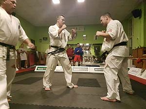 ... nem, nem egy Bruce Lee film részletei ezek, hanem a december 2-a délutáni események. Ezen a délutánon ugyanis a Wellness Colosseum falai között egy fiatal sensei, Lantos Lehel 50 pihent ellenféllel nézett szembe az Immortals50-nek elnevezett eseményen, hogy ezáltal "vegye fel a kesztyűt" saját magával és arasson győzelmet önmaga felett. 50 ellenfél? Az ember gondolkodik olyan dolgokon, hogy majd jól kitanulja a harcművészetet, és a tükör előtt mindenféle mozdulatokat produkál, sőt fejben már a hercegnő is meg van mentve a 7 fejű sárkánytól. Na de 50 ellenfél?! Bizony ilyen is létezik. És nem csak úgy találomra, hanem oly módon, hogy a szembenálló felek legalább 50%-át le is kell győzni, hiszen csak így minősül sikeresnek a vizsga. Ehhez pedig nagyon sok mindent kellett ám tenni!