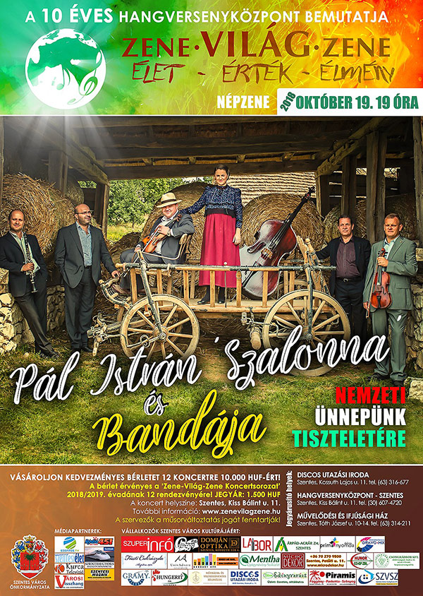 Pál István 'Szalonna' és Bandája Szentesen Ismét Szentesen ad koncertet Pál István 'Szalonna' és Bandája 2018. október 19-én a Hangversenyközpont nagytermében. A nemzeti ünnepünk tiszteletére adott koncert 19. órakor kezdődik. További részletek a plakáton!