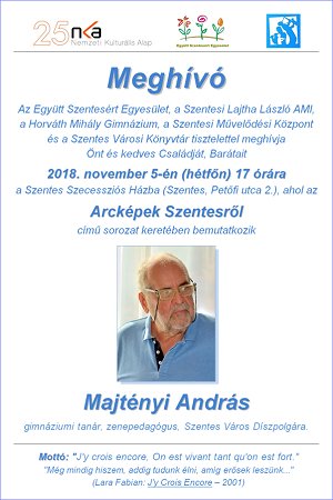 Arcképek Szentesről - Majtényi András Az Együtt Szentesért Egyesület, a Szentesi Lajtha László AMI, a Horváth Mihály Gimnázium, a Szentesi Művelődési Központ és a Szentes Városi Könyvtár tisztelettel meghívja Önt és kedves Családját, Barátait