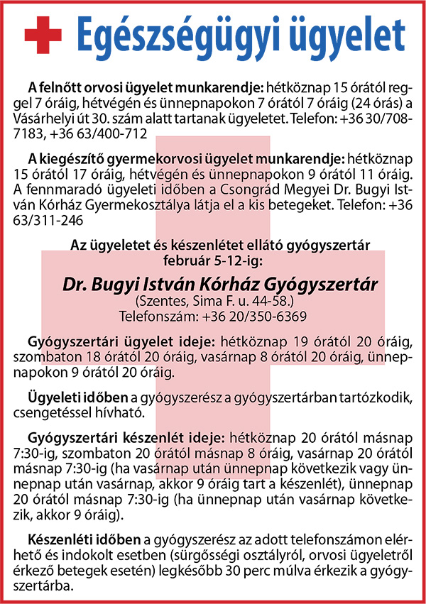 Szentesen az alábbiak szerint alakul az egészségügyi