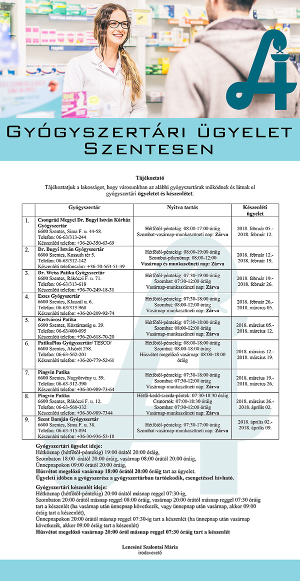 városunkban az alábbi gyógyszertárak működnek és látnak el gyógyszertári